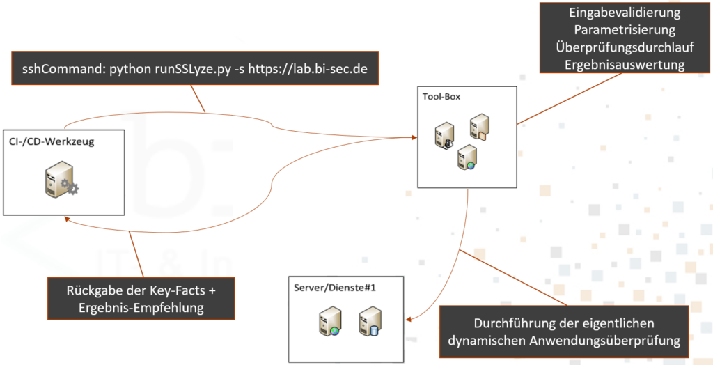 Alle drei Stages rufen per SSH ein Python-Script auf dem KALI-Linux System auf. Beispiel startSSLyze: